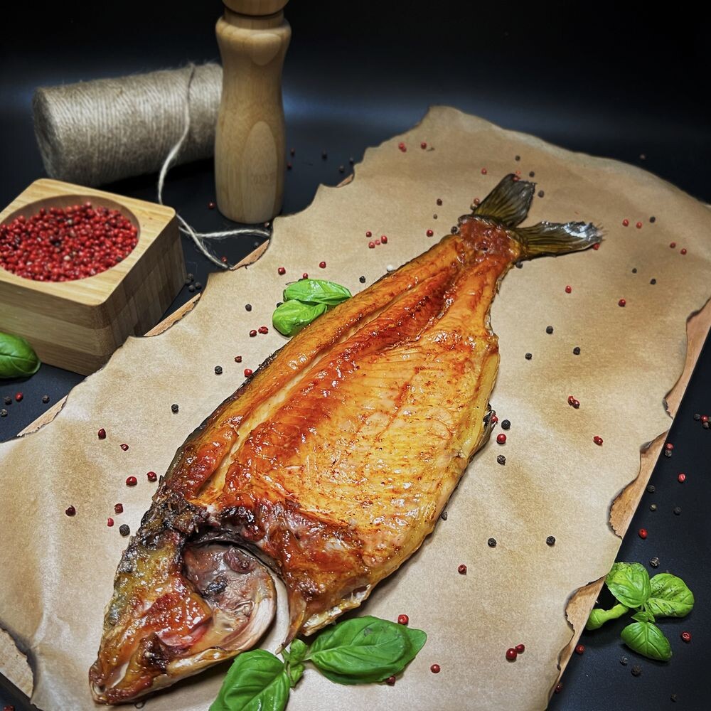 Свежевыловленный карп горячего копчения в фирменных специях. Цена указана за готовый вес.